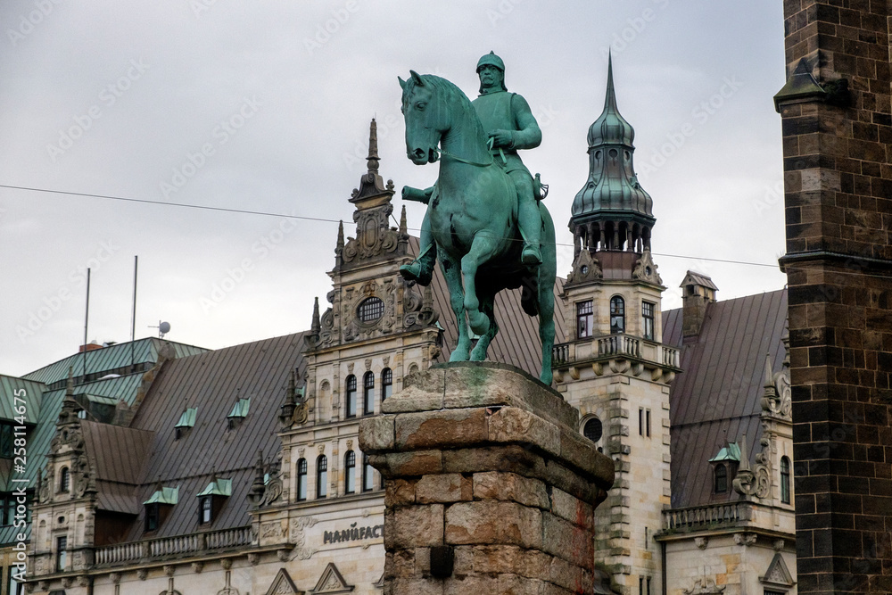 Fotografie Monument of the Reichskanzler Otto von Bismarck on horseback near the Cathedral of St