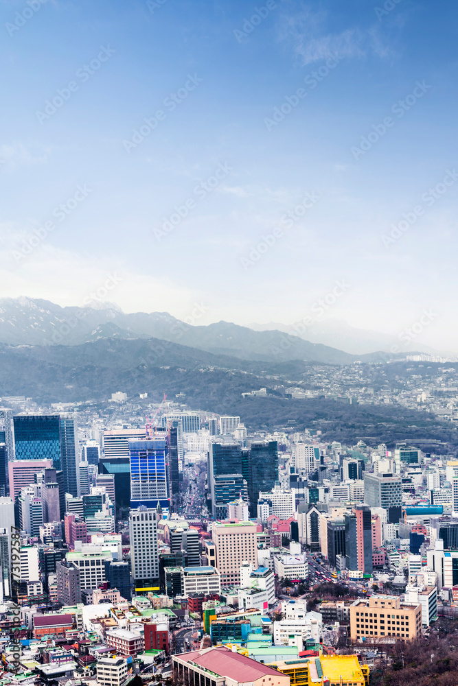 Fotografie Seoul cityscapes, skyline, high rise office buildings and skyscrapers in Seoul c