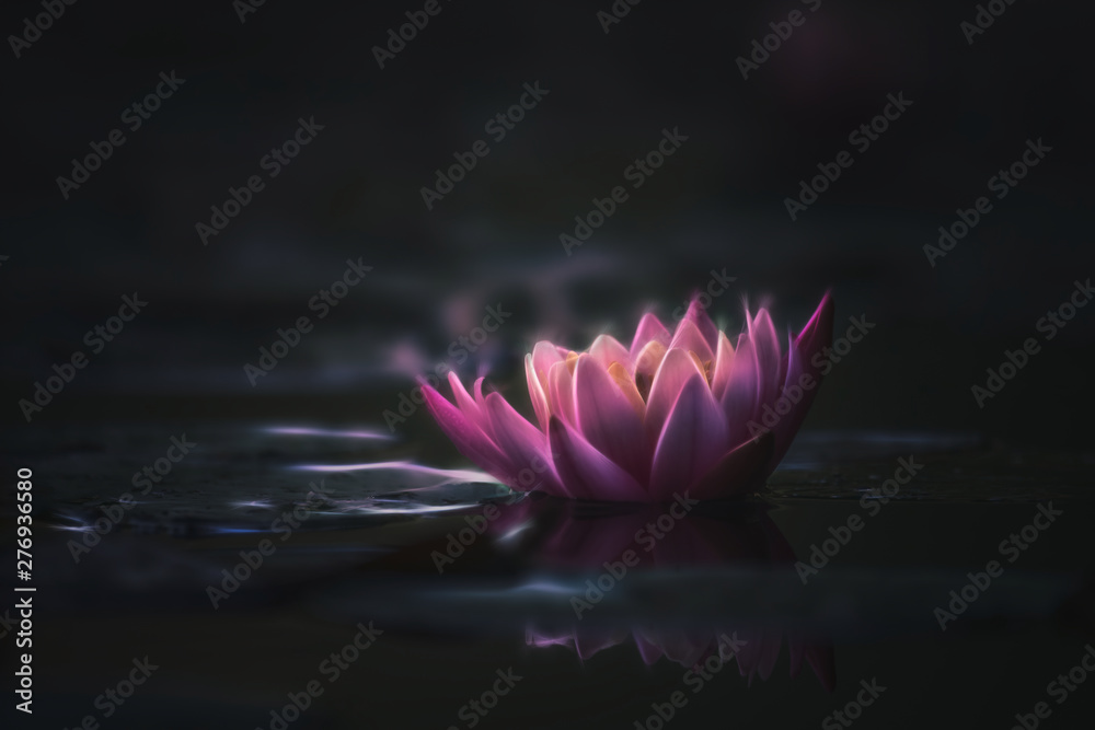 Fotografie drawing style waterlily or lotus flower in pond