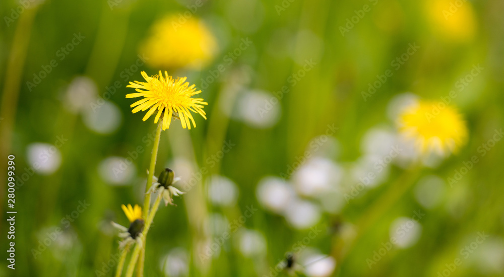 Fotografie Sowthistle flowers on a meadow, shallow depth of field