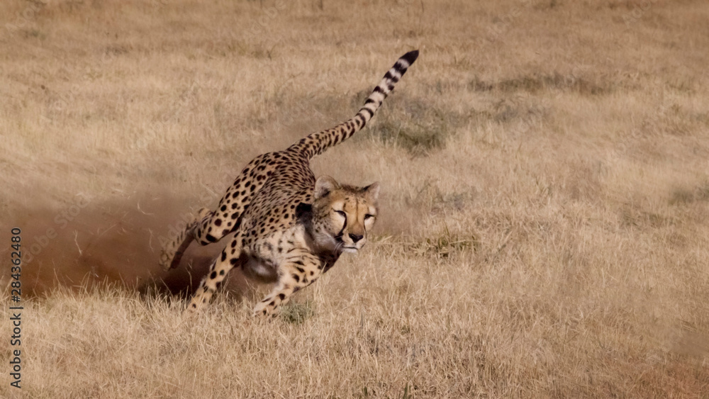 Fotografie Namibia. Cheetah running at the Cheetah Conservation Foundation.