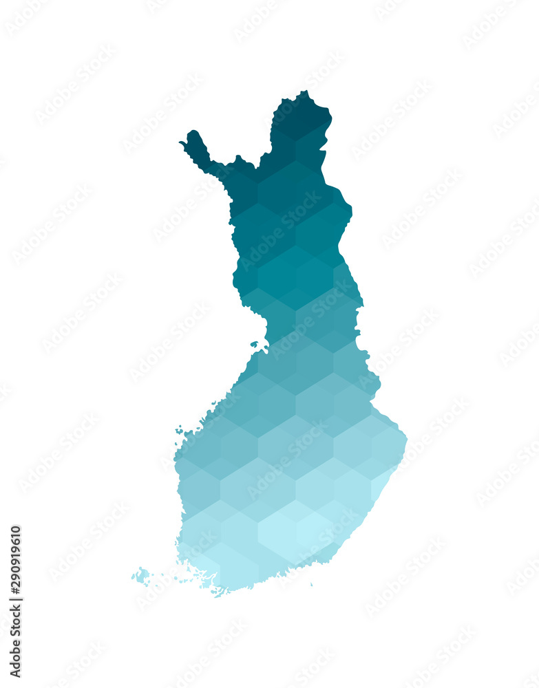 Vector isolated illustration icon with simplified blue silhouette of Finland map. Polygonal geometric style. White background