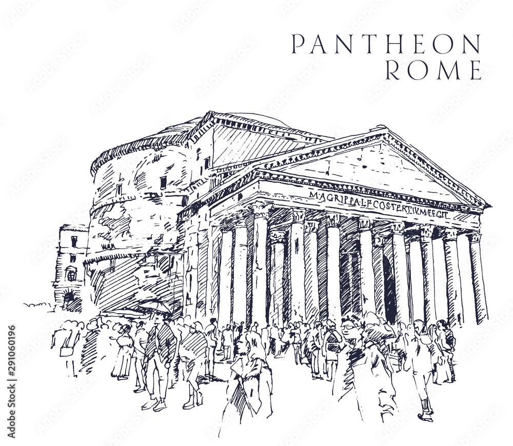 Fotografie Drawing sketch illustration of the Pantheon, Rome