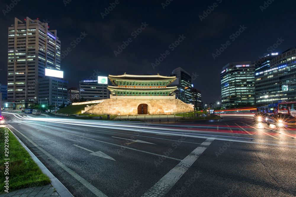 Fotografie Traffic at old fortress Namdaemun gate in Seoul South Korea.