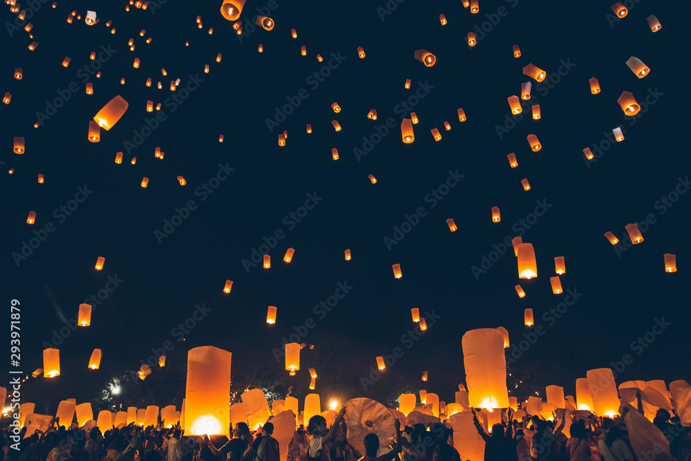 Fotografie Loy krathong festival, thai new year party with floating lanterns release in the