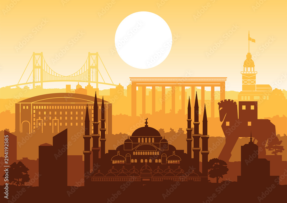 Fotografie Turkey famous landmark silhouette style with row design on sunset time,vintage c