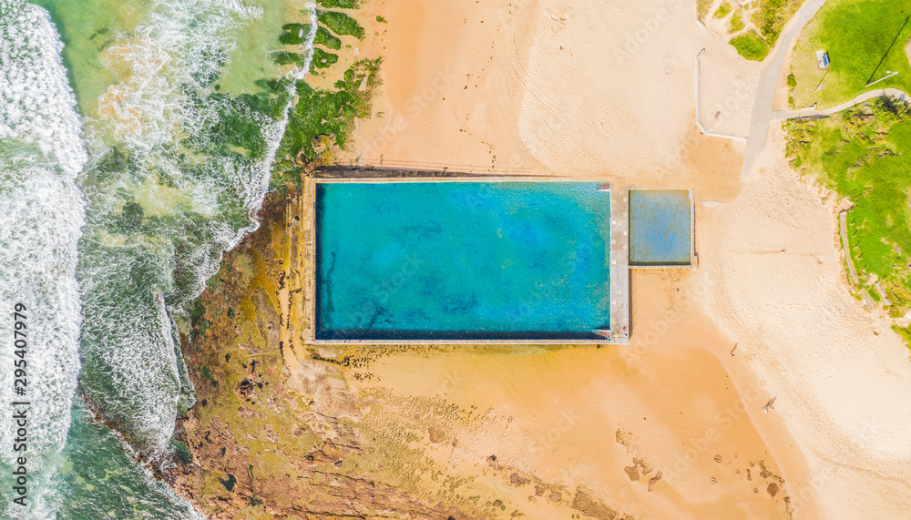 Fotografie Aerial top down view of a beach pool