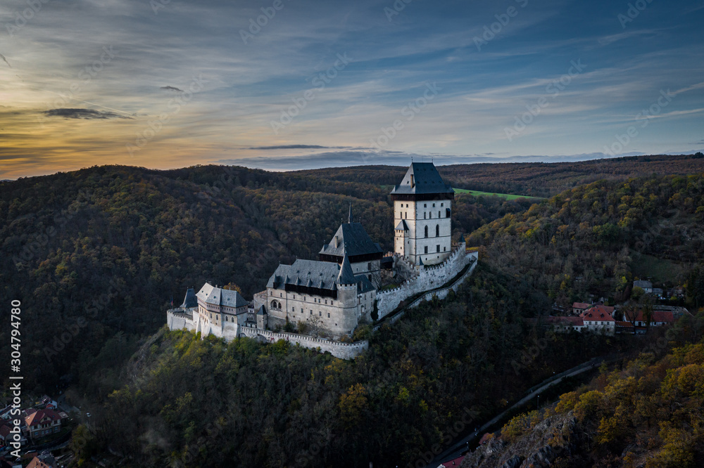 Fotografie Karlstejn Castle is a large Gothic castle founded 1348 CE by Charles IV, Holy Roman Emperor-elect and King of Bohemia