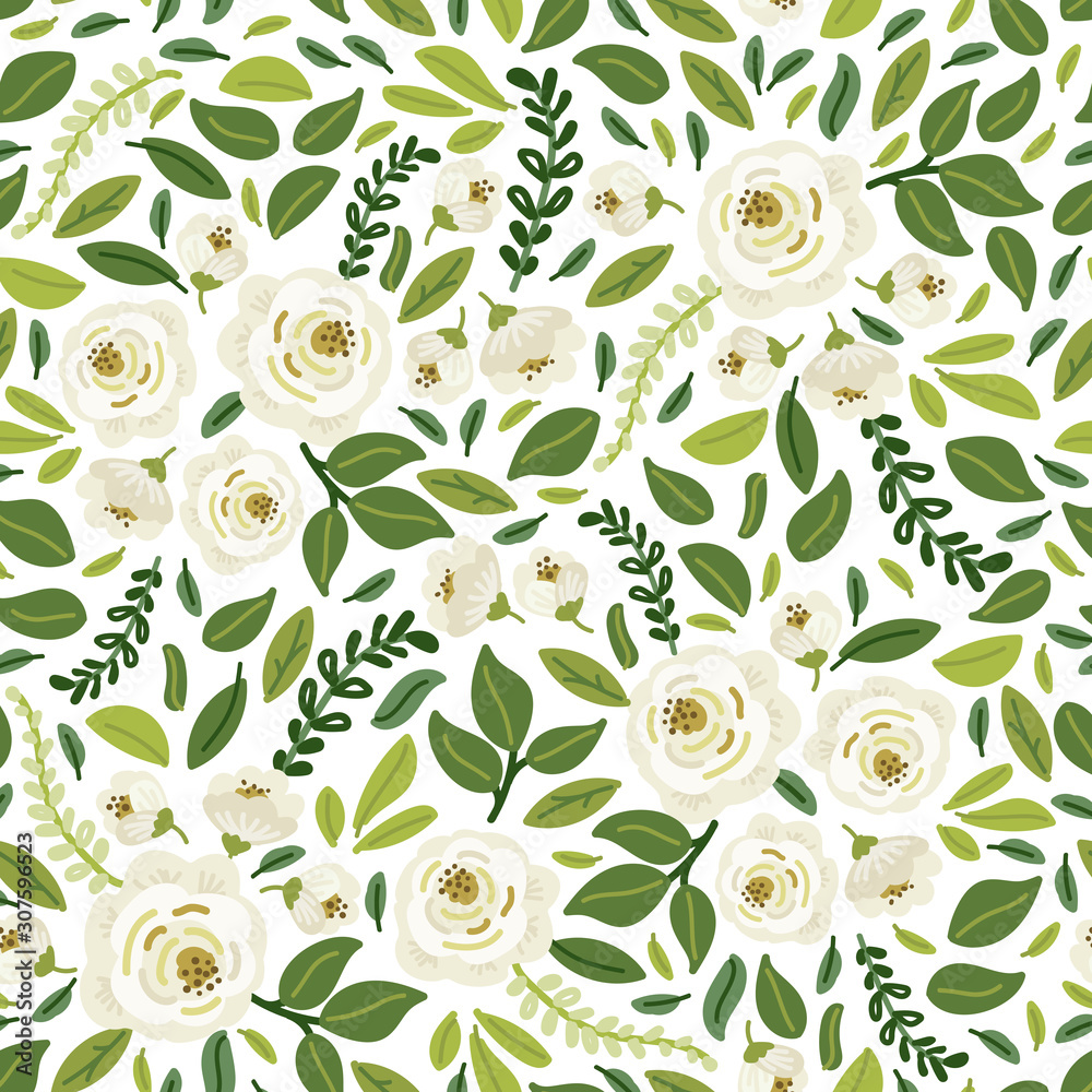 Fotografie Cute botanical floral seamless pattern background with bouquets of hand drawn ru