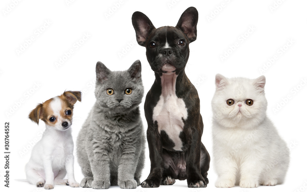 Fotografie Group of dogs and cats in front of white background