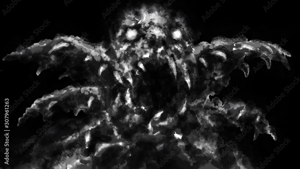 Fotografie Scary monster face with opened mouth. Black and white
