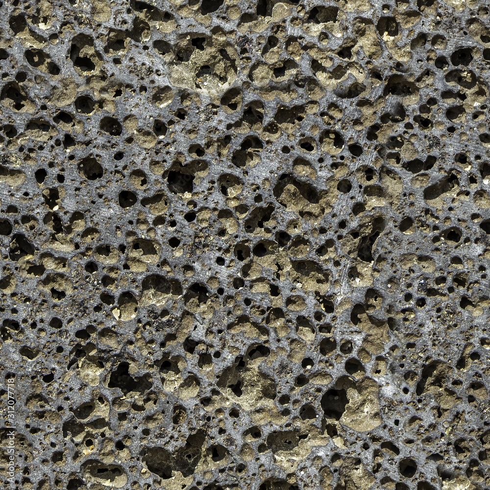 Fotografie Seamless pattern texture of orange stone pumice with holes is in the photo