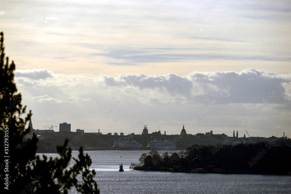 Fotografie panorama of city of stockholm, beautiful, sweden, sverige,nacka, stockholm