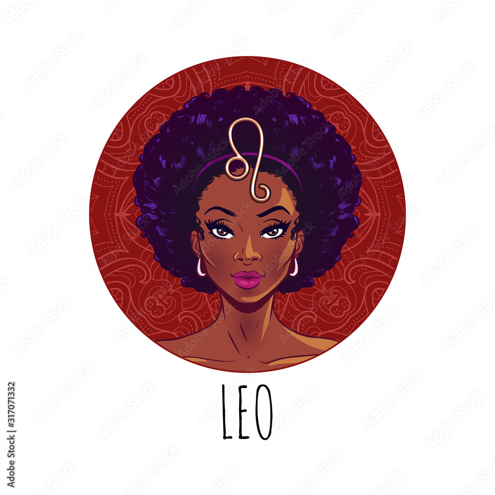 Fotografie Leo zodiac sign artwork, beautiful girl face, horoscope symbol, star sign, vecto