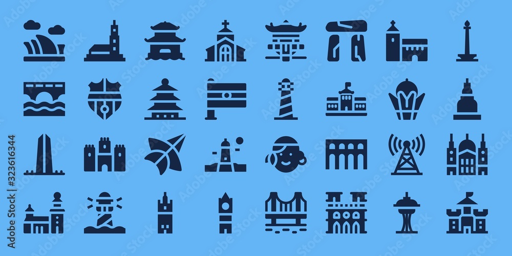 Fotografie Modern Simple Set of landmark Vector filled Icons