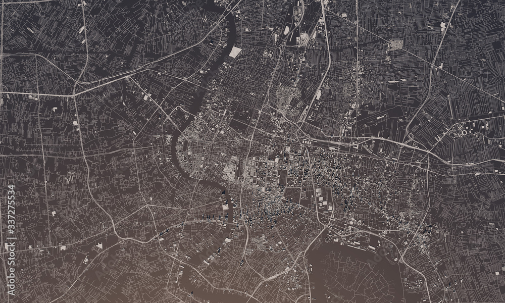 Fotografie Bangkok, Thailand city map 3D Rendering. Aerial satellite view.