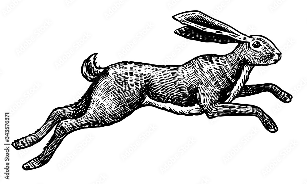 Fotografie Wild hare or rabbit is jumping