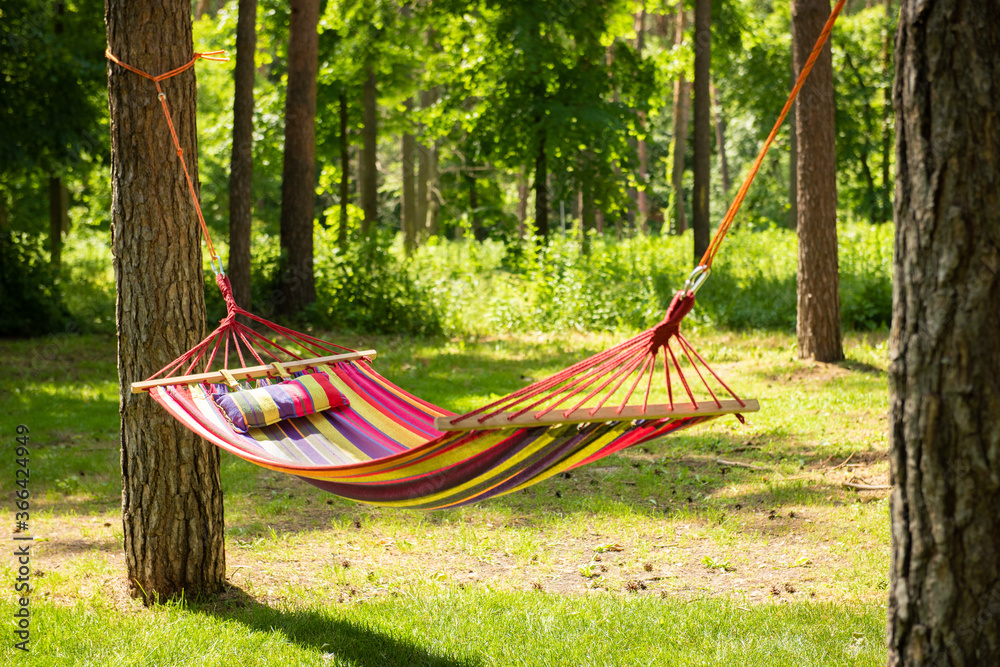 Fotografie Beautiful landscape with hammock in the summer garden, sunny day