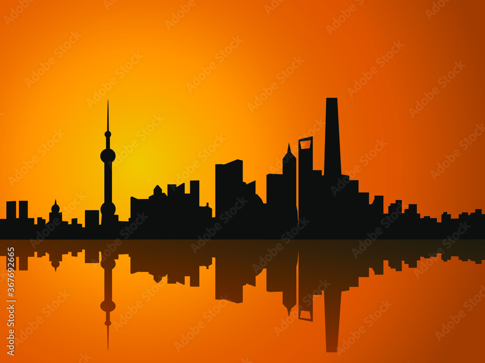 Fotografie vector illustration Shanghai China city skyline at sunset buildings panorama