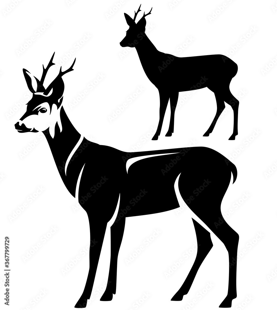 Fotografie standing roe deer male animal side view black and white vector outline and silho
