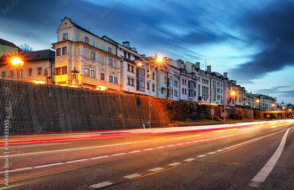 Fotografie Bratislava street Staromestska - Old town, Slovakia at night