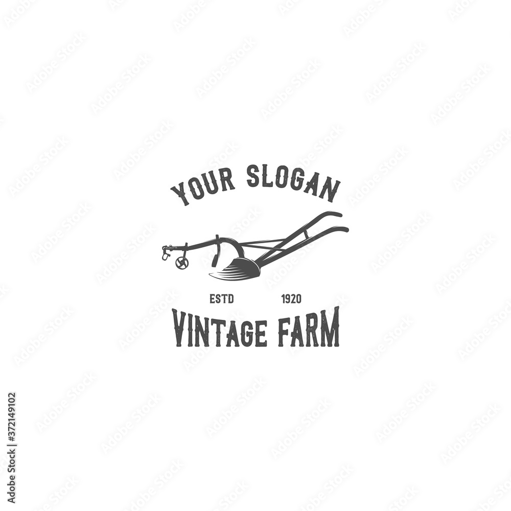 Fotografie old plough emblem silhouette logo vector