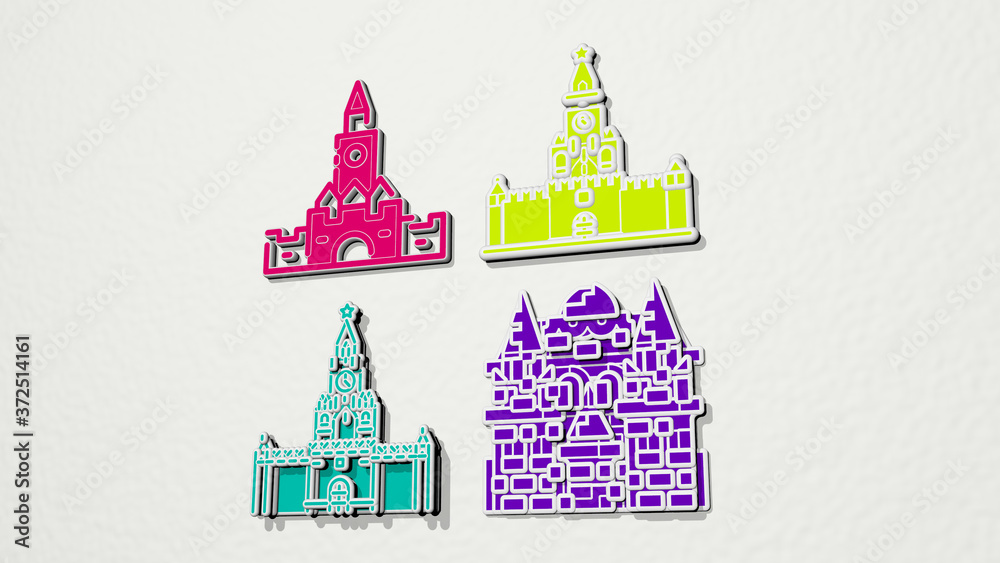 Fotografie KREMLIN colorful set of icons, 3D illustration for russia and moscow