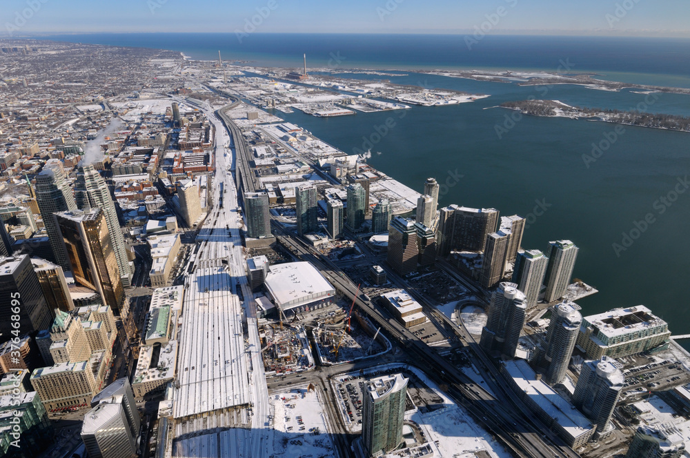 Fotografie Aerial view of Toronto Union Station and Harbourfront east in winter