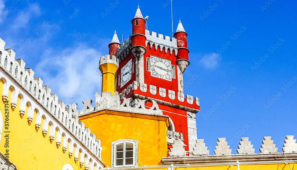 Fotografie The Pena Palace, a romanticist castle in Sao Pedro de Penaferrim, in the municipality of Sintra, on the Portuguese Riviera