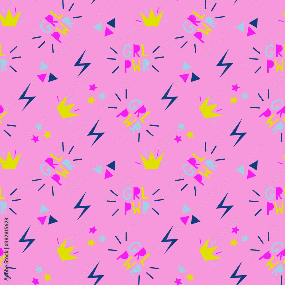 Fotografie Seamless vector pink pattern about girl power
