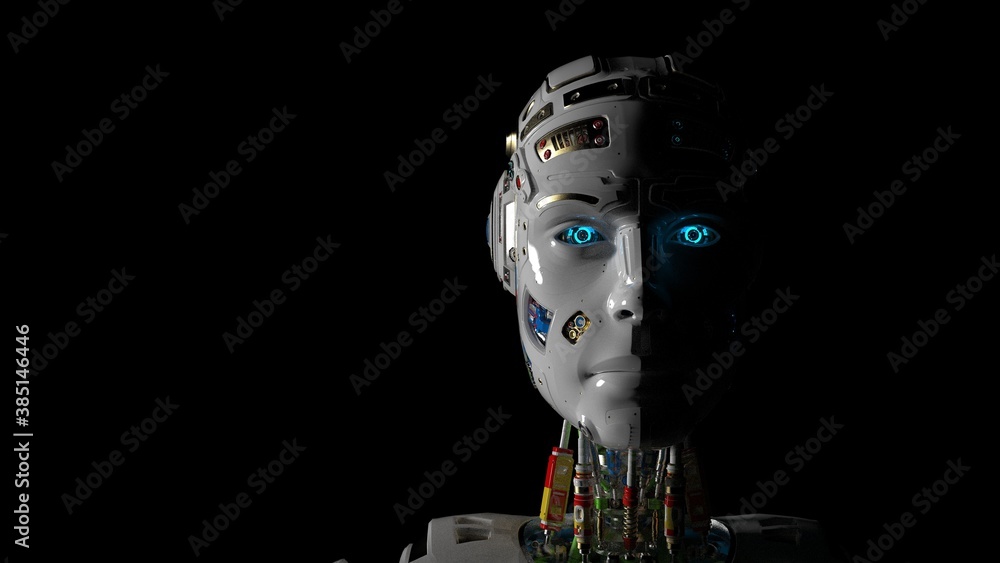 Fotografie Detailed appearance of the AI robot under spot lighting background