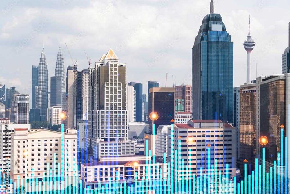 Fotografie Financial stock chart hologram over panorama city view of Kuala Lumpur