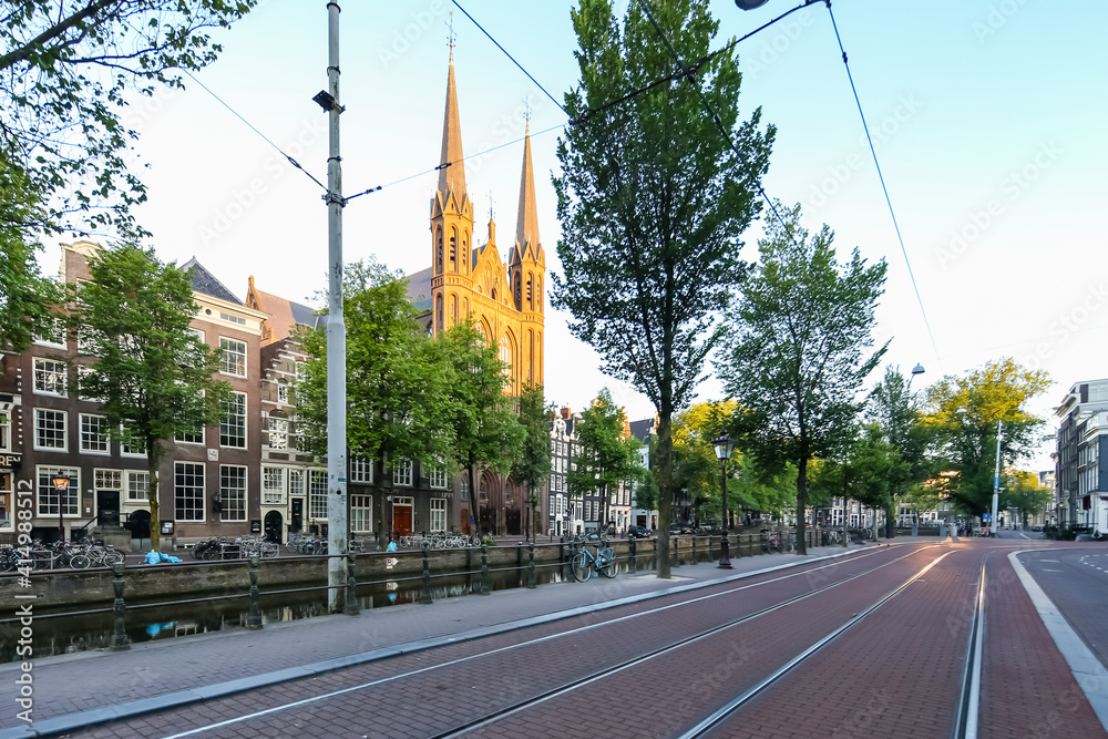 Fotografie Iconic buildings along the streets and canals of Amsterdam around Dam Square, e