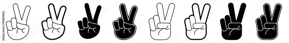Fotografie Peace Sign Icon Peace Sign Victory Hand Set | Peace Signs Symbol Vector Illustra