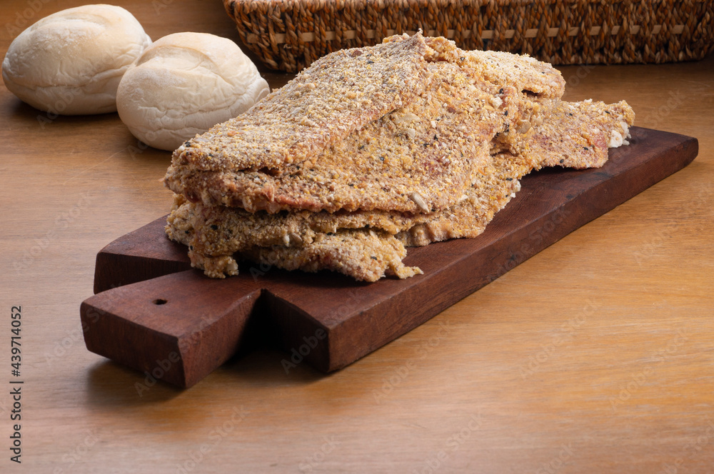 Fotografie raw milaneses on wooden board