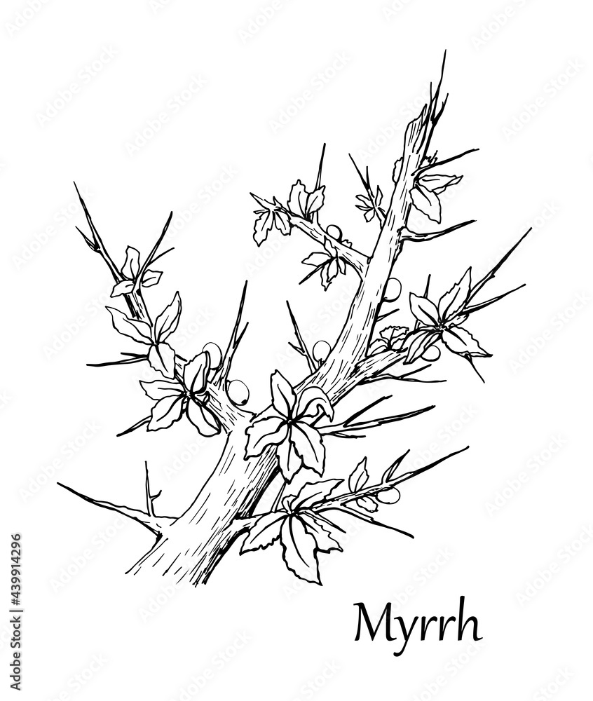 Fotografie Myrrh branch. Vector illustration. Hand drawn sketch
