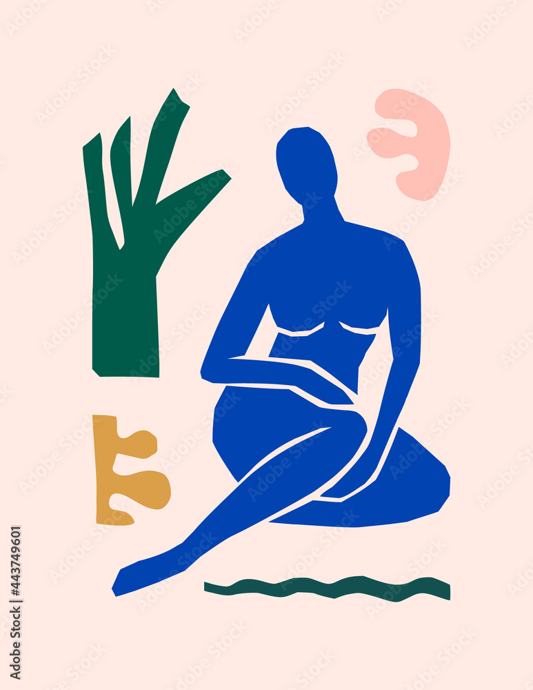 Matisse-inspired Abstract Art of the Female Figure and Organic Shapes in a trendy minimalist style. Vector collage