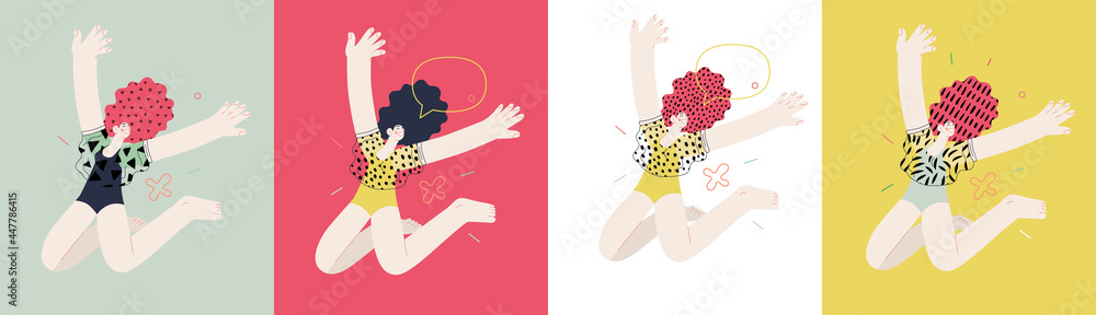 Fotografie Happiness - happy people jumping in the air cheerfully
