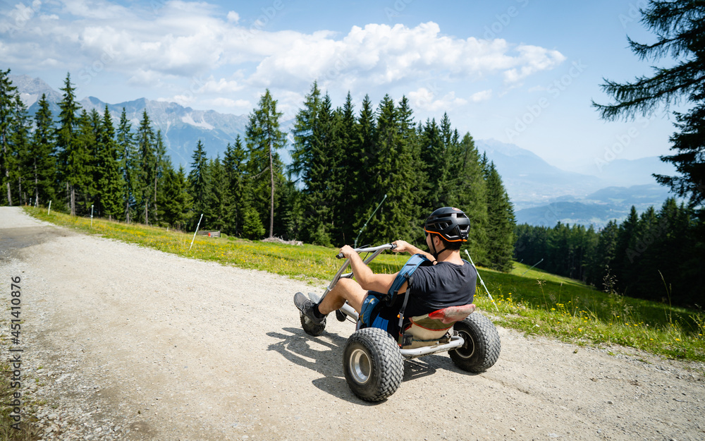 Fotografie Riding a tricycle down a hill