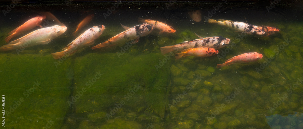 Fotografie A group of colorful fish in the murky water.