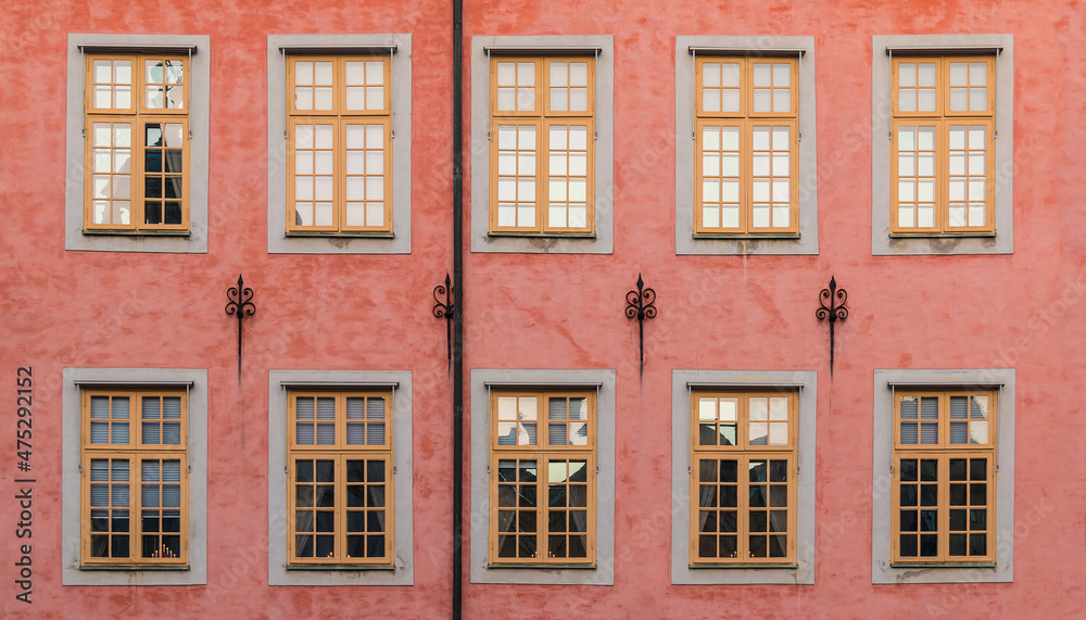 Fotografie Many windows on facade of the urban historic building front view, Stockholm, Swe