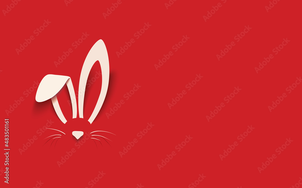Fotografie Happy Easter greeting card with white paper cut Easter Bunny isolated on a red b