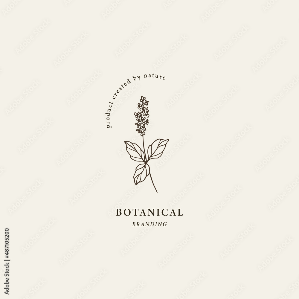 Fotografie Line art patchouli branch logo. Essential oil plant illustration