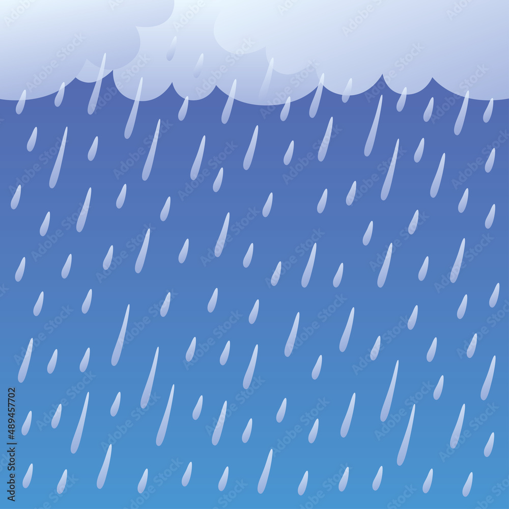Fotografie Clouds and falling rain drops in a dark sky vector background, rainy weather forecast illustration