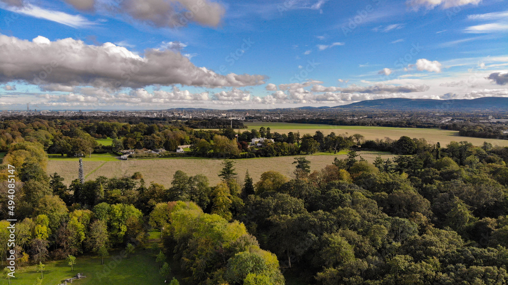 Fotografie Aerial view of a field under the cloudy skies in Dublin, Ireland