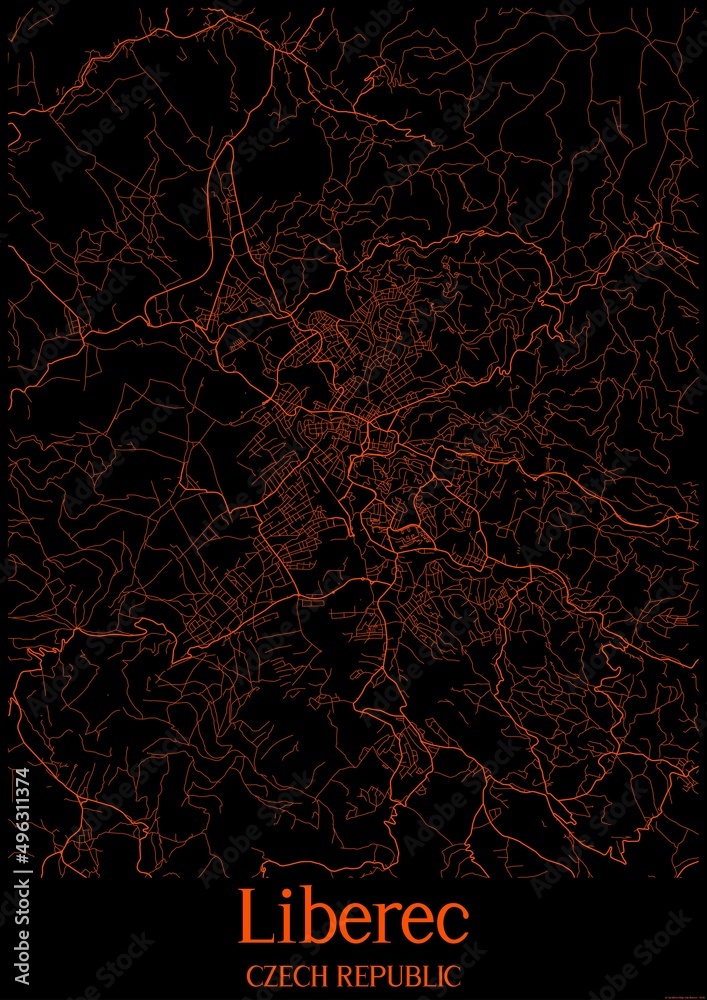 Fotografie Black and orange halloween map of Liberec Czech Republic