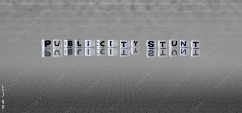 Fotografie publicity stunt word or concept represented by black and white letter cubes on a