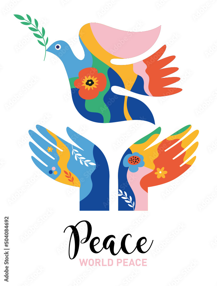 Fotografie Hands releasing Peace Pigeon, symbol of peace illustration