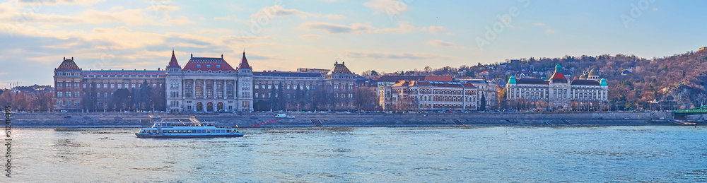 Fotografie Panorama of Danube River embankment with Corvinus University corps, Budapest, Hu