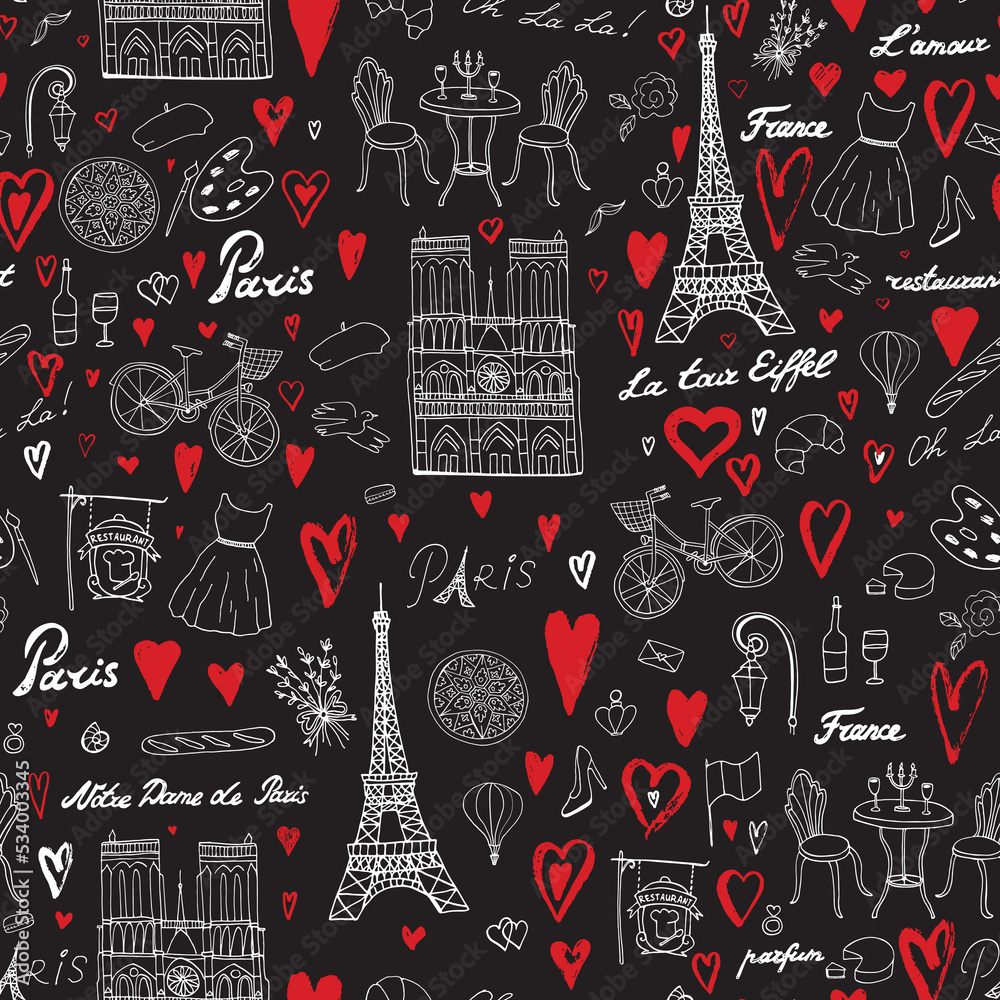 Fotografie Paris France travel vector seamless pattern.